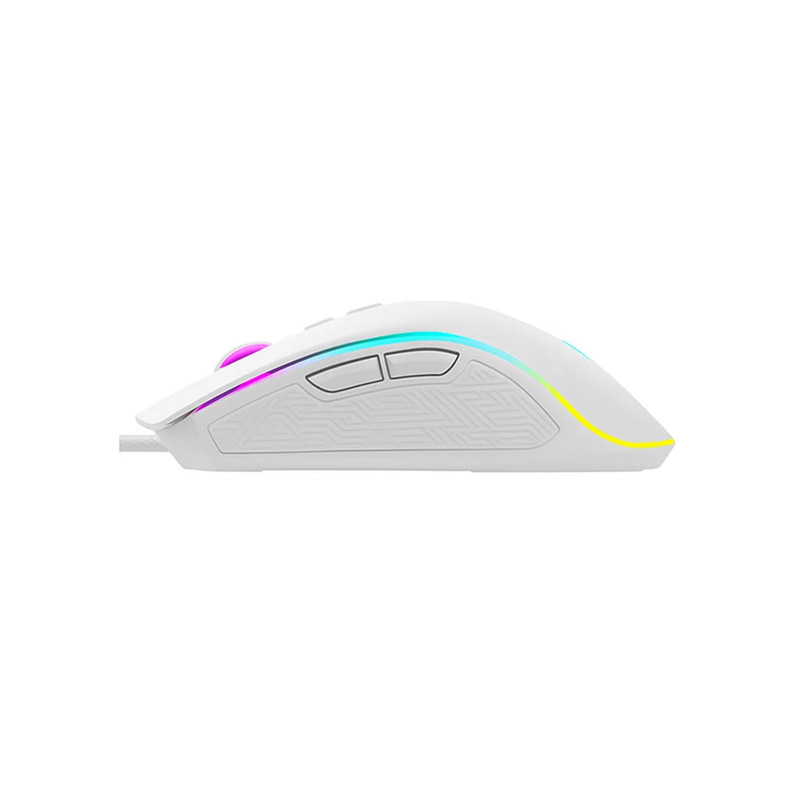 نورپردازی RGB ماوس با جلوههای متنوع، رنگ سفید بدنه را از حالت ساده به حالتی جذاب و زنده میبرد؛ مثل خطی از نور که نفس میکشد و با حرکت دست هماهنگ میشود. برای کسانی که میخواهند کنترل بیشتری داشته باشند، نرمافزار اختصاصی محصول امکان تنظیم نور، DPI و کلیدها را بهصورت دقیق فراهم کرده.