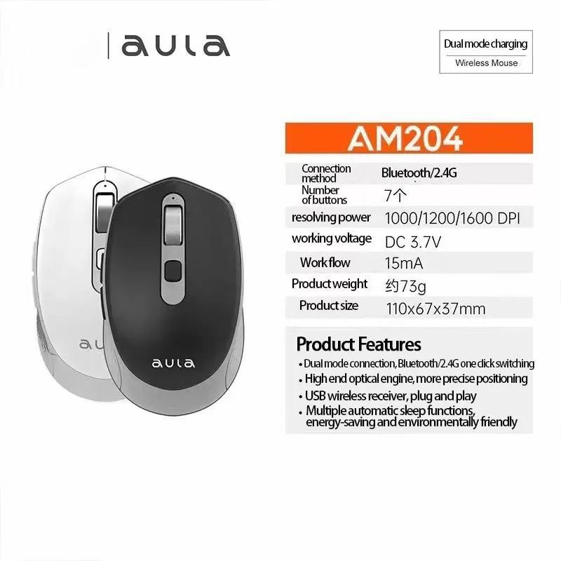 ماوس بی سیم AULA مدل AM204 یک دستگاه همه کاره و کاربرپسند است که بهره وری و راحتی را برای طیف گسترده ای از کاربران، افزایش می دهد. AM204 با طراحی شیک و ویژگی های پیشرفته خود، به عنوان یک انتخاب قابل اعتماد برای کسانی که به دنبال یک ماوس بی سیم کارآمد هستند، برجسته می شود. AM204 دارای طراحی ارگونومیک است که به راحتی در دست قرار می گیرد که به کاهش فشار در طول استفاده طولانی مدت کمک می کند. این ماوس از مواد بادوام ساخته شده است که عمر طولانی را حتی در صورت استفاده زیاد تضمین می کند. اندازه جمع و جور آن را برای حمل و نقل ایده آل می کند و به کاربران این امکان را می دهد که به راحتی آن را در کیف لپ تاپ یا کوله پشتی قرار دهند. یکی از قابل توجه ترین ویژگی های AULA AM204 اتصال بی سیم آن است. این ماوس با بهره گیری از فناوری بی سیم 2.4 گیگاهرتز، اتصال پایدار و قابل اعتمادی را با حداقل تأخیر فراهم می کند. این به ویژه برای گیمرها و حرفه ای هایی که به دقت و زمان پاسخ سریع نیاز دارند مفید است. این ماوس دارای یک گیرنده USB است که در صورت عدم استفاده می تواند به راحتی در خود دستگاه ذخیره شود و خطر گم شدن آن را از بین ببرد. همچنین این ماوس علاوه بر اتصال از طریق دانگل USB امکان اتصال از طریق بلوتوث را نیز دارد. AM204 دقت ردیابی فوق العاده ای را بر روی سطوح مختلف از جمله میز و حتی پارچه ارائه می دهد. تنظیمات DPI قابل تنظیم (1000-1200-1600) به کاربران این امکان را می دهد که حساسیت خود را مطابق با ترجیحات خود سفارشی کنند و آن را برای برنامه های مختلف مناسب می کند. AULA AM204 با در نظر گرفتن بهره وری انرژی طراحی شده است و تامین انرژی این ماوس از طریق باتری داخلی قابل شارژ ممکن می شود و دیگر نیازی به تعویض و هزینه کردن برای باتری ندارید. به طور خلاصه، ماوس بی سیم AULA مدل AM204 یک انتخاب عالی برای هر کسی است که به یک ماوس بی سیم قابل اعتماد، راحت و کاربردی نیاز دارد. طراحی ارگونومیک، اتصال بی سیم پایدار، ویژگی های قابل تنظیم چشمگیر آن را به گزینه ای برجسته در بازار شلوغ تبدیل کرده است. چه برای بازی، چه برای کار یا استفاده روزمره، AM204 یک تجربه کاربری استثنایی را ارائه می دهد که نیازها و ترجیحات مختلف را برآورده می کند.