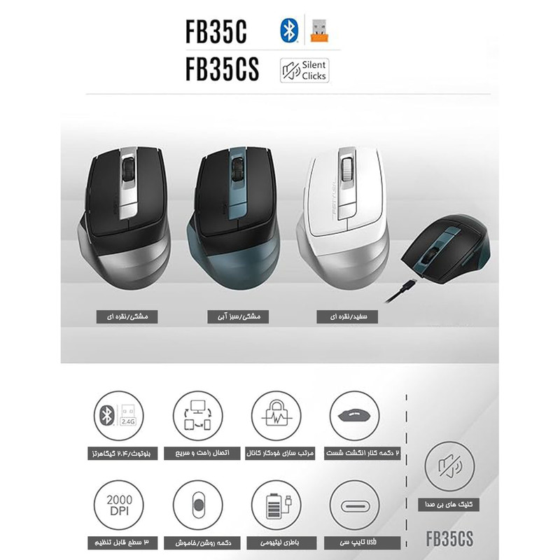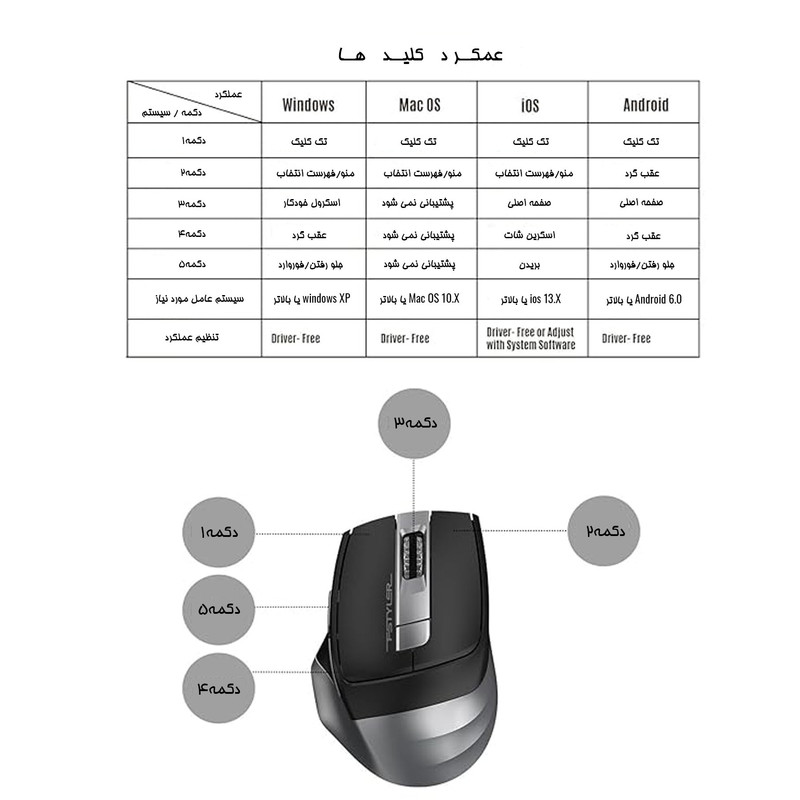 موس دو حالته بی سیم و بلوتوث ایفورتک از طراحی آرگونومیک بهره میبرد و از کلیدهای جانبی بکوارد و فوروارد برخوردار میباشد. این موس را میتوان با استفاده از دنگل یا بلوتوث نسخه 3و4 به دستگاه موردنظر متصل نمود. دقت موس در چهار مرحله تا 2000DPI قابل تنظیم میباشد و دکمه خاموش / روشن نیز در زیر موس تعبیه شده است. همچنین کلیدهای این موس بی صدا میباشند.