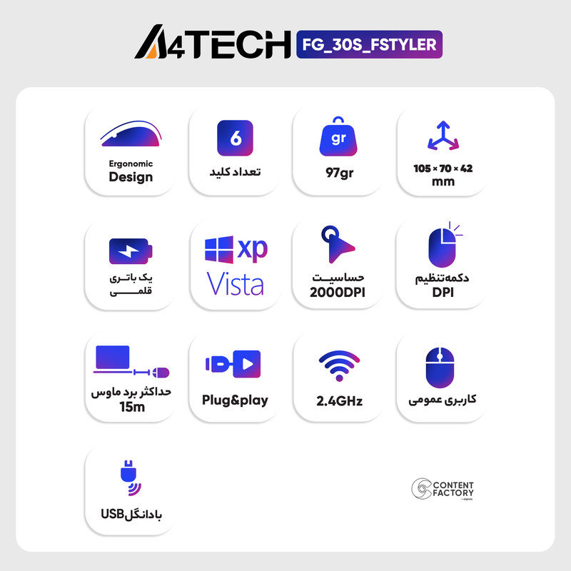 ماوس بیسیم مدل FG30S STYLER یکی از محصولات باکیفیت و با قیمت مناسب در بازار است که با توجه به ویژگیهای منحصربفردی که دارد توجه بسیاری از افراد را به خود جلب کرده است. باید بدانید که در طراحی و ساخت این محصول از باکیفیتترین مواد استفاده میشود تا بتواند طراحی عالی و خوشدستی داشته باشد و به راحتی توسط کاربران مورد استفاده قرار بگیرد.
