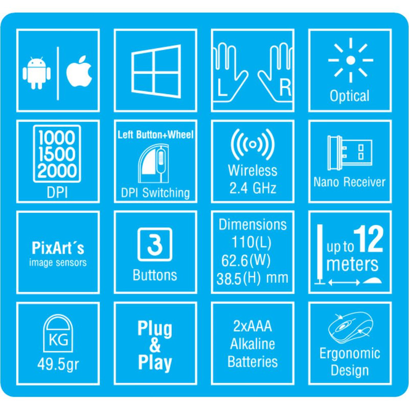از ویژگی این ماوس می توان به اتصال بی سیم با دانگل اشاره کرد که به راحتی و بدون نیاز به نصب نرم افزار به دستگاه متصل میشود.