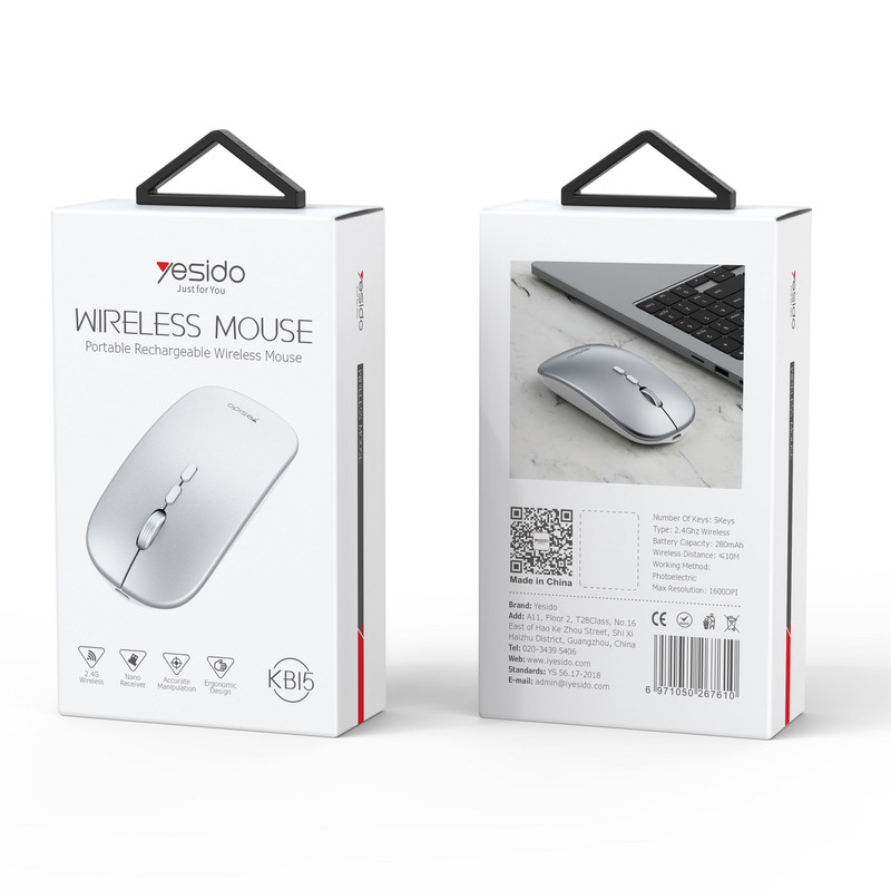 ماوس بیسیم یسیدو مدل KB15 ، با طراحی ارگونومیک و زیبا، مناسب کارکرد روزمره و اداری شماست. این ماوس، با باتری قابل شارژ، شمارا از خرید مکرر باتری برای ماوس بی نیاز میکند و دارای نور پردازی قرمز زیبا میباشد. برند یسیدو، برندی معتبر و سازنده ی محصولات با کیفیت است و در پی کسب رضایت مشتریان عزیز میباشد. کالای اصل باید دارای برچسب کنترل کیفیت مطابق تصویر باشد.حداکثر رزولوشن این دستگاه 1600DPI میباشد