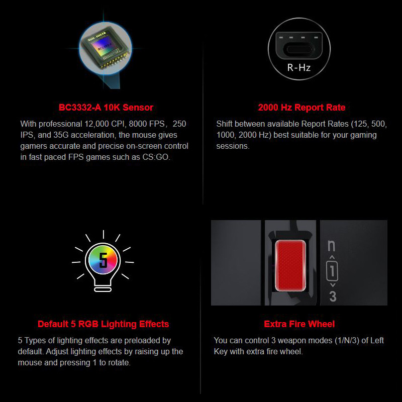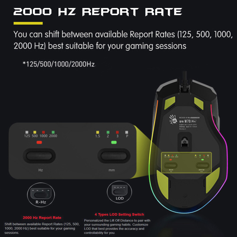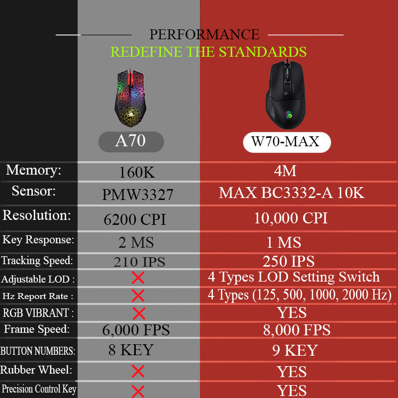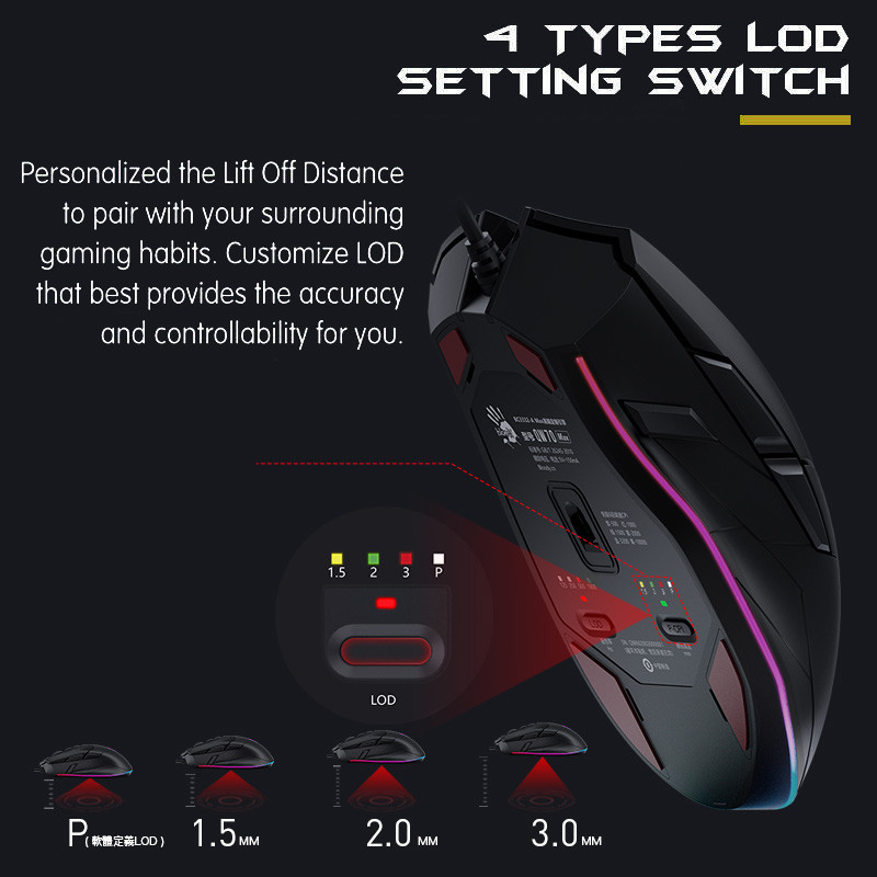 یک ماوس تمام عیار و حرفه ای از برند محبوب و جهانی بلادی . این ماوس نیو فیس ( باز طراحی ) ماوس A70 است که در تعریف مجدد بلادی روی تمام جزییات با دقت کار شده است تا نهایت سرعت و دقت را به کاربر منتقل کند. این ماوس دارای طراحی ارگونومیک است که با انحنای دست هماهنگی کامل دارد تا کاربر در استفاده دچار خستگی و احساس درد نکند. این ماوس دارای 4 مگابایت حافظه داخلی است و سنسور پر قدرت آن BC3332-A 10K Sensor است. نکته مهم این ماوس پاسخ کلیک های 1 میلی ثانیه ای است که در جهان بی همتاست. همچنین شما می توانید 3 حالت سلاح (1 / N / 3) Left Key را با چرخ آتش اضافی کنترل کنید. در زیر این ماوس جذاب دو سنسور با تنظیم کاربر قرار دارد که یکی از آنها سنسور های 4 Types LOD Setting Switch است که کاربر بر اساس نیاز خود تنظیم کند و سویچ کند. نکته کلیدی بعدی این ماوس دقت تا 10000 است که در دنیا بی رقیب است. نرخ گزارش 2000 هرتز بین نرخ های گزارش موجود (125 ، 500 ، 1000 ، 2000 هرتز) مناسب برای بازی خود تغییر دهید. 4 نوع سوئیچ تنظیم LOD Lift Off را شخصی سازی کنید تا با عادات بازی شما جفت شود. LOD را سفارشی کنید که به بهترین وجه دقت و کنترل را برای شما فراهم کند.
