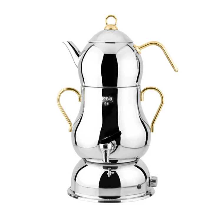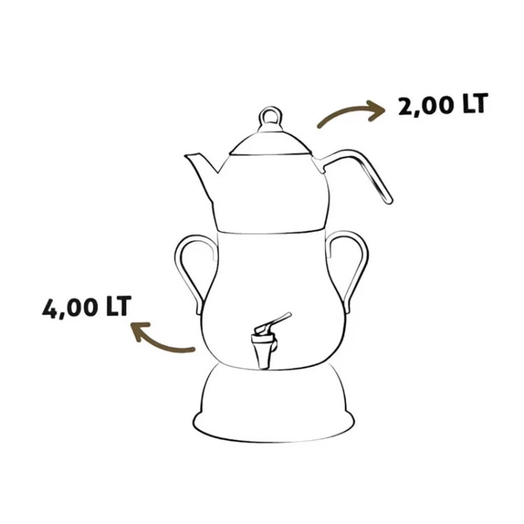 محصول کشور ترکیه - دارای دسته های فلزی - دارای قابلیت حفظ گرما برای جلوگیری از کهنه شدن چای و از هدر رفتن زمان شما و همچنین صرفه جویی در برابر گرما - دارای دسته های استیل که حمل محصول را آسان میکند - گنجایش قوری : ۲ لیتر و گنجایش سماور ۴ لیتر - دارای شستشویی آسان