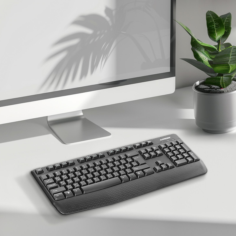 کیبورد گرین مدل GK306 یک صفحهکلید Full-Size با طراحی ارگونومیک و کلیدهای نرم و کمصدا است که برای کاربران اداری و خانگی طراحی شده است. این کیبورد با ۱۲ کلید میانبر مالتیمدیا و استراحتگاه مچ دست، تجربهی تایپ راحتی را برای کاربران فراهم میکند. ساختار مقاوم، کیفیت بالای بدنهی پلاستیک ABS و چاپ دیجیتال حروف فارسی با لایهی محافظ، از ویژگیهای بارز این مدل است که ماندگاری و دوام بالایی را تضمین میکند. اتصال این کیبورد از طریق پورت USB انجام شده و بهصورت Plug & Play عمل میکند، بنابراین بدون نیاز به نصب درایور، بلافاصله آمادهی استفاده خواهد بود. پایههای ضد لغزش و قابل تنظیم نیز به کاربر اجازه میدهند زاویهی مناسبی را برای تایپ انتخاب کند. این مدل فاقد نورپردازی است، اما به لطف کلیدهای ممبران نرم و کمصدا، گزینهای ایدهآل برای محیطهای کاری، منازل و فضاهای آرام محسوب میشود. کابل ۱۸۰ سانتیمتری نیز اتصال راحت به سیستم را ممکن میسازد. چاپ دیجیتال روی کلیدها همراه با یک لایهی محافظ، از رنگپریدگی جلوگیری کرده و دوام بالایی را برای حروف فارسی و انگلیسی تضمین میکند. کیبورد GK306، با ترکیبی از عملکرد روان، کیفیت ساخت بالا و طراحی ارگونومیک، انتخابی مناسب برای افرادی است که به دنبال یک کیبورد مقاوم، راحت و کمصدا برای تایپهای طولانیمدت هستند.