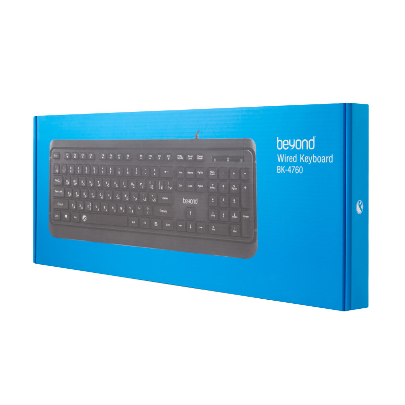 کیبورد بیاند BK-4760 از طریق کابل و پورت USB به سیستم مورد نظر شما وصل میشود و بدون نیاز به نصب نرم افزار میتوانید از این محصول استفاده کنید.کلیدهای کیبورد بیاند BK-4760 دارای حروف فارسی هستند و چاپ با کیفیت بالای این حروف حک شده باعث ماندگاری بالای آنها شده است.