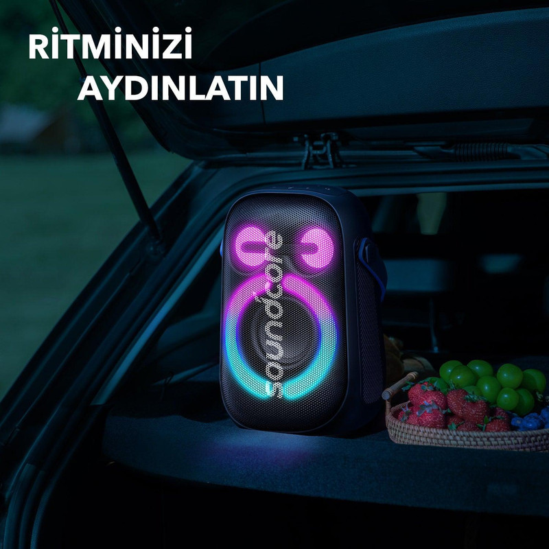 اسپیکر بلوتوث قابل حمل انکر مدل Rave Neo 2 A33A1 کیفیت صدای بالا با توان خروجی 80 وات دارد. این اسپیکر طراحی زیبا و جمعو جوری دارد. علاوه بر آن قابل حمل بوده و تنها 4.6 کیلوگرم وزن دارد. بنابراین میتواند در مهمانیهای شما مورد استفاده قرار گیرد. این اسپیکر در سفر هم شما را همراهی خواهد کرد. این اسپیکر مقاوم در برابر ضربه و آب بوده و گواهینامه IPX7 دارد. این اسپیکر از باتری به عنوان منبع انرژی استفاده میکند. باتری این اسپیکر با عمر طولانی و قابلیت شارژ سریع قابلیتهای جذابی در اختیار شما قرار میدهد. اسپیکر بلوتوث قابل حمل انکر مدل Rave Neo 2 A33A1 قابلیت اتصال به دستگاه های دیگر با بلوتوث 5.0، قابلیت پخش موسیقی با کیفیت بالا از طریق رادیو FM را هم دارد. این اسپیکر دارای نورپردازی است. درواقع این اسپیکر مجهز به رقص نور با قابلیت شخصی سازی است.