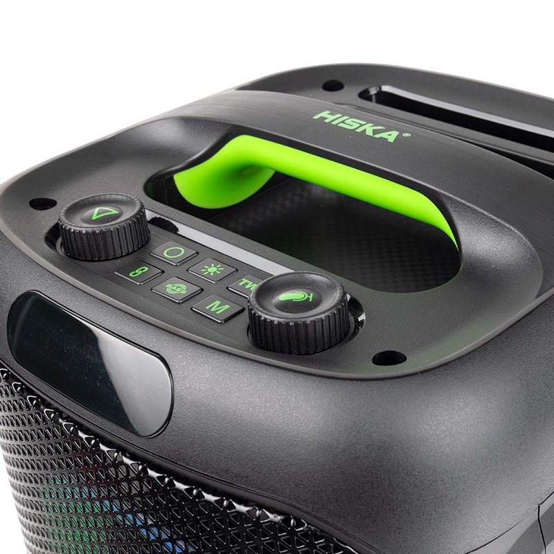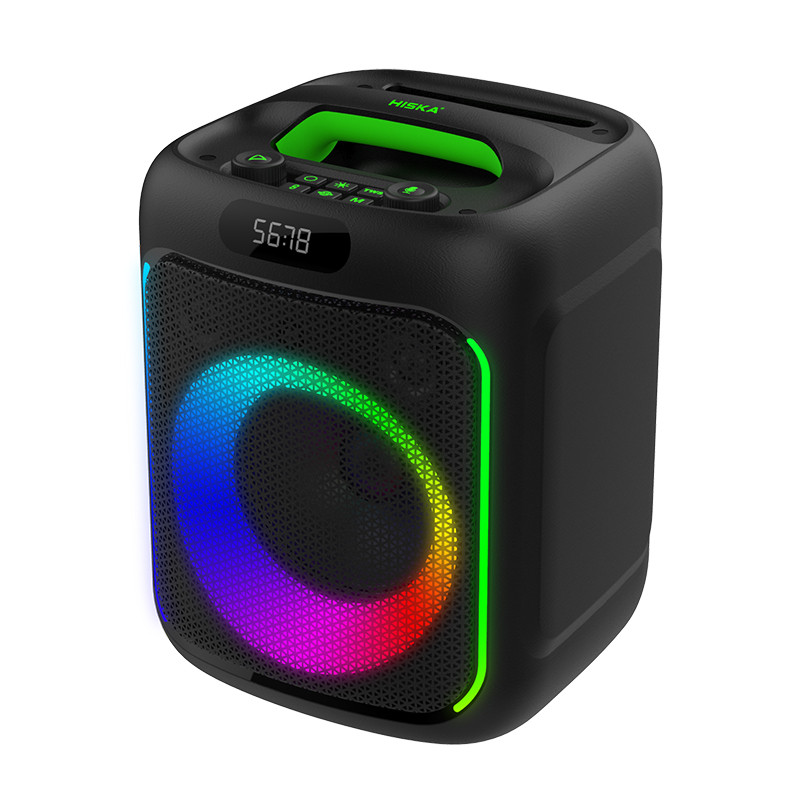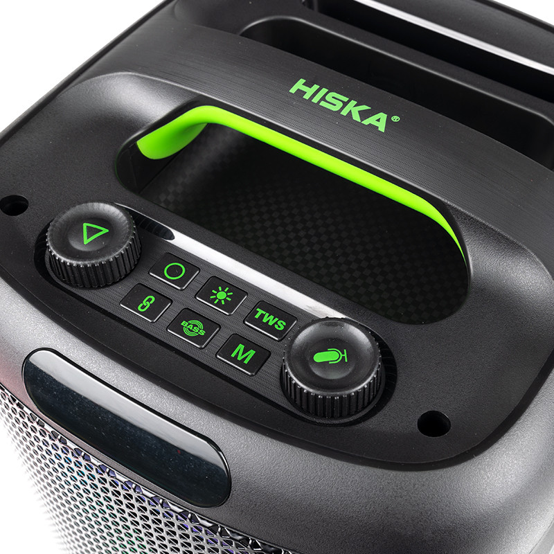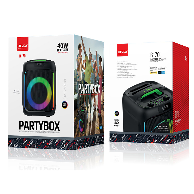 اسپیکر بلوتوثی قابل حمل هیسکا مدل B170 محصول جدید از پارتی باکس های کوچک هیسکاست که به تازگی از آن رونمایی شده است. این اسپیکر پرچم دار از توان خروجی 40 وات برخوردار است که در نوع خود بی نظیر است. این اسپیکر از طریق بلوتوث نسخه 5.3 میتواند با دیوایس پخش کننده موسیقی متصل گردد. اسپیکر بلوتوثی قابل حمل هیسکا مدل B170 همچنین در کنار بلوتوث از کارت حافظه TF ، جک 3.5 میلیمتری صدا و جک 6.3 میکروفون و پورت USB نیز پشتیبانی میکند. اتصال بلوتوث این اسپیکر تا شعاع 10 متری میتواند به دستگاه پخش کننده موسیقی متصل بماند. این اسپیکر از دوبلندگو یکی به قطر 6.5 اینچ و دیگری 1.5 اینچی تشکیل شده است که بلندی صدا و کیفیت بالا در کنار بیس قوی آن، شما را در جمع های دوستانه و خانوادگی بسیار راضی می کند. باتری این اسپیکر از ظرفیت 4000 میلی آمپری برخوردار است که به راحتی تا 4 ساعت میتواند به پخش موسیقی بپردازد . همچنین دارای رقص نور جذاب در اطراف بلندگو و لبه های کناری اسپیکر، زیبایی خاصی به آن میدهد که قابل تغییر و خاموش کردن نیز می باشد. همچنین این اسپیکر قابلیت اتصال همزمان به دو اسپیکر را نیز داراست . و از دیگر قابلیت های جذاب این اسپیکر به قابلیت Karaoke می توان اشاره کرد که این امکان را به شما می دهد که همزمان با پخش موسیقی مورد علاقه تان شما به جای خواننده، بازخوانی کنید.