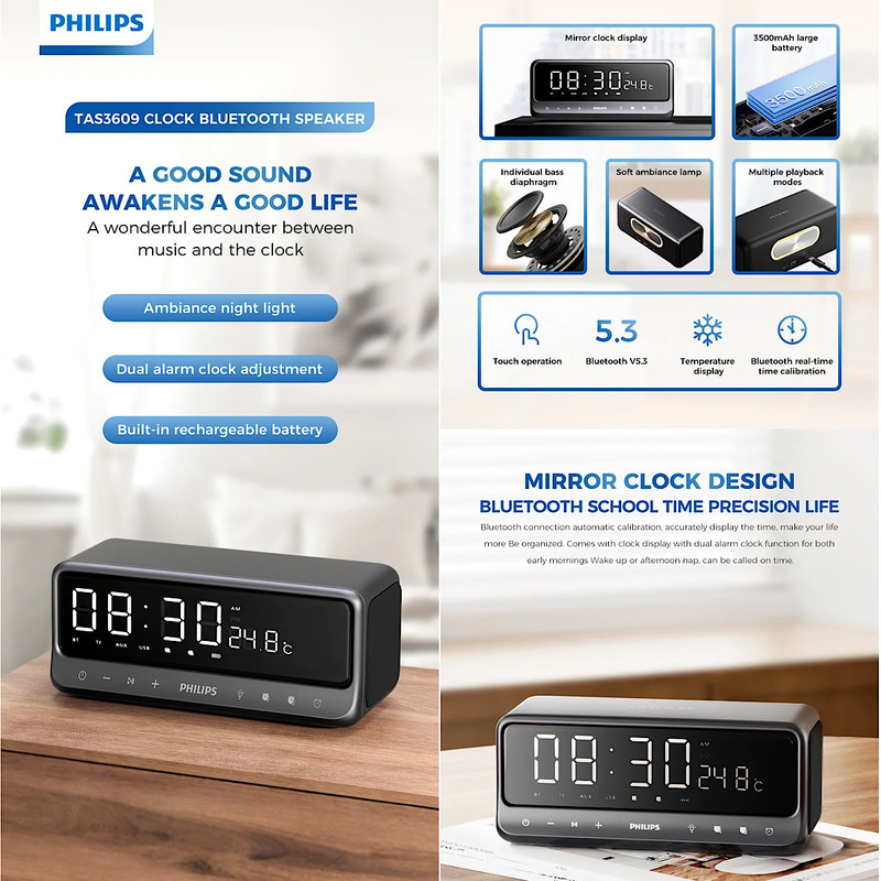 اسپیکر و ساعت بلوتوثی فیلیپس مدل TAS3609