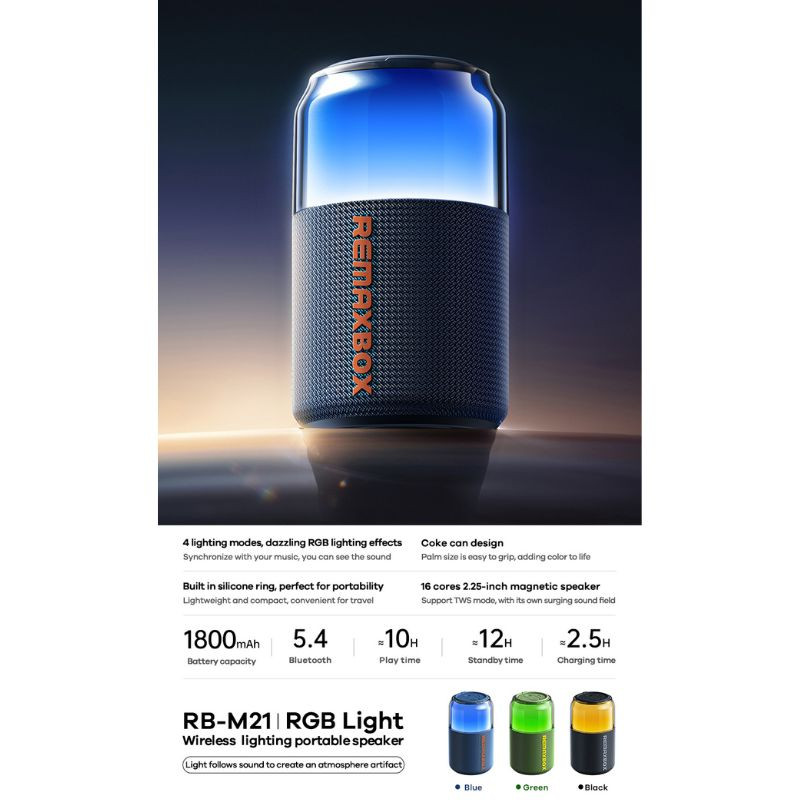 به طور خلاصه، اسپیکر Remax RB‑M21 RGB Light نمادی از تلفیق تکنولوژی مدرن، طراحی حرفهای و لذت گوش دادن به موسیقی است؛ گزینهای بیرقیب برای کسانی که کیفیت صدا و زیبایی بصری را همزمان میخواهند.