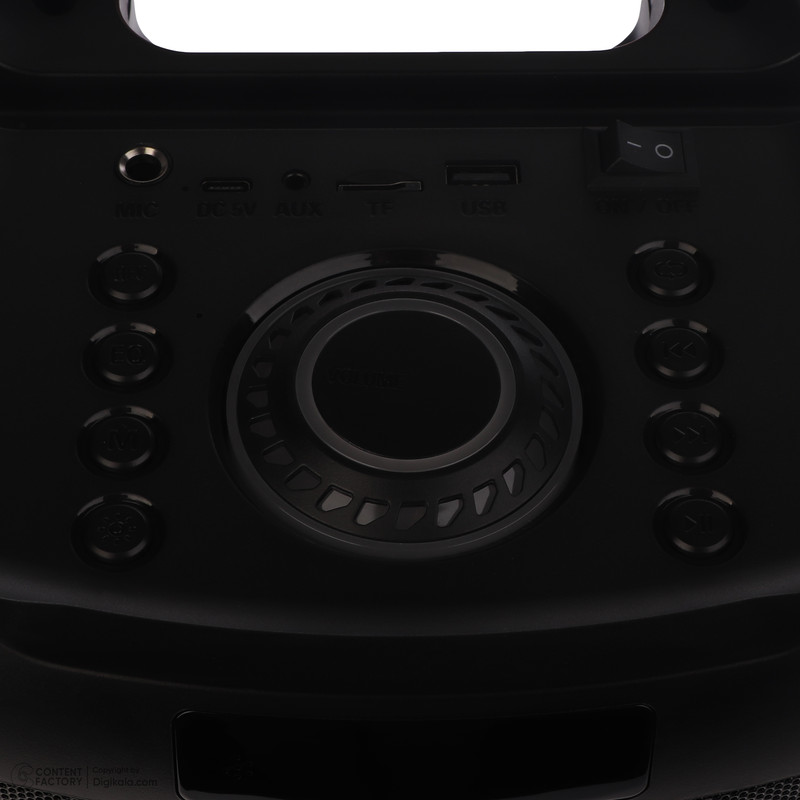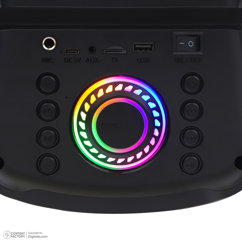 این اسپیکر دارای ورودی میکروفون و قابلیت ضبط صدا روی کارت حافظه است که آن را به گزینهای مناسب برای ارائهها، سخنرانیها یا برنامههای تفریحی تبدیل میکند. دکمههای تنظیم اکولایزر، تغییر حالت استفاده و تنظیم نورپردازی روی بدنه اسپیکر تعبیه شدهاند تا کاربران بتوانند تجربه صوتی و بصری خود را شخصیسازی کنند. همچنین امکان تنظیم پاسخ فرکانس صدا در دو حالت داخلی و خارجی وجود دارد که انعطافپذیری بیشتری را در استفاده ایجاد میکند.