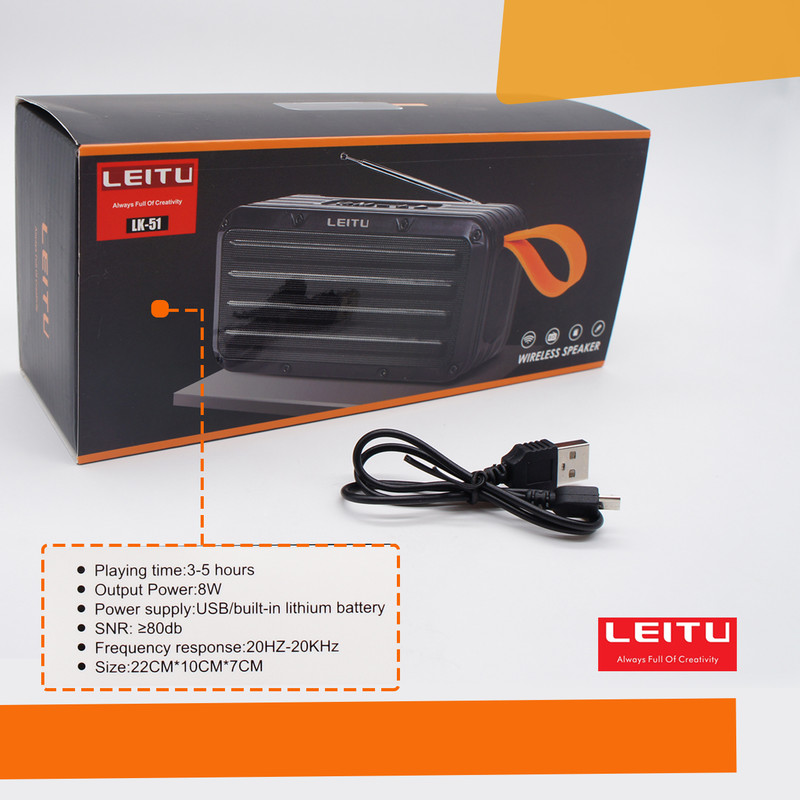 شرکت لیتو، یک شرکت مدرن تولید کننده لوازم جانبی تلفن همراه مانند هندزفری، هدست، بلوتوث، اسپیکر، هدفون، پاوربانک، شارژر فندکی، کابلهای انتقال دیتا، شارژرهای دیواری و کابلهای انتقال صدا است که دارای محصولاتی با درجه کیفیت عالی و غیرقابل مقایسه با دیگر محصولات تولید شده از مبدا کشور چین است. { LK - 51 } نام یکی از جدیدترین اعضای شرکت لیتو است که به تازگی تولید و در ایران از آن رونمایی شد. در مورد ویژگیهای ظاهری این محصول جدید و مکعب شکل میتوان به زیبایی آن اشاره کرد که هنگام استفاده از آن با توجه به طراحی و زیبایی رنگهای به کار رفته در ساخت آن، حس خوبی را به مصرف کننده القا میکند. عضو جدید خانواده لیتو یک صفحه کنترل روی بدنه خود دارد که باعث افزایش زیبایی ظاهری محصول شده است. در این صفحه کنترلی دکمههای پخش و توقف – صدا کم – صدا زیاد - تغییر حالت و پاور است که در روی اسپیکر قرار گرفته است. همچنین در قسمت کنار دستگاه قسمت تو رفتهای وجود دارد که در آن درگاه ورودی کابل شارژ – فلش - کارت حافظه –کابل AUX را میتوان مشاهده کرد. در قسمت جلوی اسپیکر نیز ستلایت یک تکه با قدرت پخش صدایی واضح و نسبتا بلند همراه توری محافظ روی آن خودنمایی میکند. در بستهبندی به همراه اسپیکر کابل شارژر مخصوص و همچنین بند آویز سیلیکونی موجود است. در زیر اسپیکر دو لاستیک کوچک جهت قرار دادن آن روی سطح دلخواه و جلوگیری از لیز خوردن آن قرار گرفته است. همچنین یک آنتن رادیویی به طول 35 سانتی متر بر روی اسپیکر قرار دارد که باعث دریافت بهتر سیگنالهای رادیویی میگردد. باتوجه به قابلیت دریافت سیگنالهای رادیو اف ام بعد از تغییر حالت به رادیو با نگهداشتن کلید پخش توقف به مدت سه ثانیه اسپیکر به طور خودکار سیگنالهای قابل دریافت را جست و جو میکند و به مدت سه ثانیه هر ایستگاه رادیویی پخش میشود در صورت تمایل مجددا میتوان کلید پخش و توقف را نگهداشت تا همان ایستگاه رادیویی برای پخش انتخاب شود.