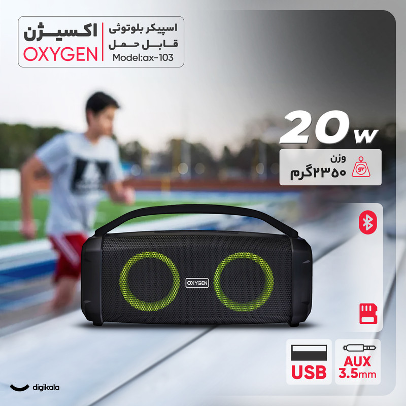 اسپیکر بلوتوثی اکسیژن مدل AX-103 با ترکیب طراحی زیبا، صدای قدرتمند و امکانات کاربردی، انتخابی مناسب برای علاقهمندان به موسیقی و کاربران خانگی و حرفهای است. این دستگاه نهتنها کیفیت صوتی بالایی ارائه میدهد، بلکه به لطف باتری پرقدرت و قابلیتهای اتصال متنوع، گزینهای ایدهآل برای محیطهای مختلف محسوب میشود.