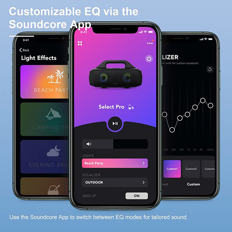 اگر به دنبال اسپیکری هستید که بتوانید با استفاده از آن بیس آهنگها را تقویت کنید و هیجان بیشتری به مهمانی و دورهمی خود ببخشید، اسپیکر بلوتوث انکر Anker Soundcore Select Pro انتخاب مناسبی برای شما خواهد بود. باید متذکر شد که انکر در اکثر محصولات خود از فناوری BassUp استفاده کرده و این امکان را به شما داده که بتوانید با استفاده از یک دکمه بیس آهنگها را تقویت کنید. این فناوری در اکثر محصولات صوتی انکر استفاده شده و بدون آن که بر کیفیت صدا تاثیر منفی بگذارد، افزایش قدرت و افزایش فرکانس صدا را انجام میدهد. دقت داشته باشید که این اسپیکر قدرت صدای فوقالعادهای دارد و اگر شما از آن در محیط منزل استفاده کنید، صدا تا خارج از منزل نیز شنیده خواهد شد.