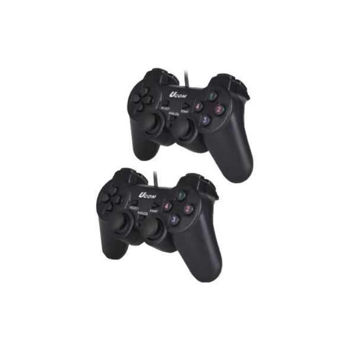دسته بازی دوبل شوک دار UCOM مدل plus یک گیم پد با ساختار ارگونومیک و مهندسی شده که در زمان استفاده طولانی از خستگی دست جلوگیری کرده و کمترین آسیب های احتمالی را به دست و انگشتانتان وارد میکند.از ویژگی های این گیم پد وجود شوک بسیار قوی برای حس هیجان بیشتر در بازی های اکشن و جنگی با 10 کلید اصلی و یک کلید ANALOG که شما براساس نیاز خود میتوانید دسته را به دو حالت دیجیتال یا دستی تغییر دهید.