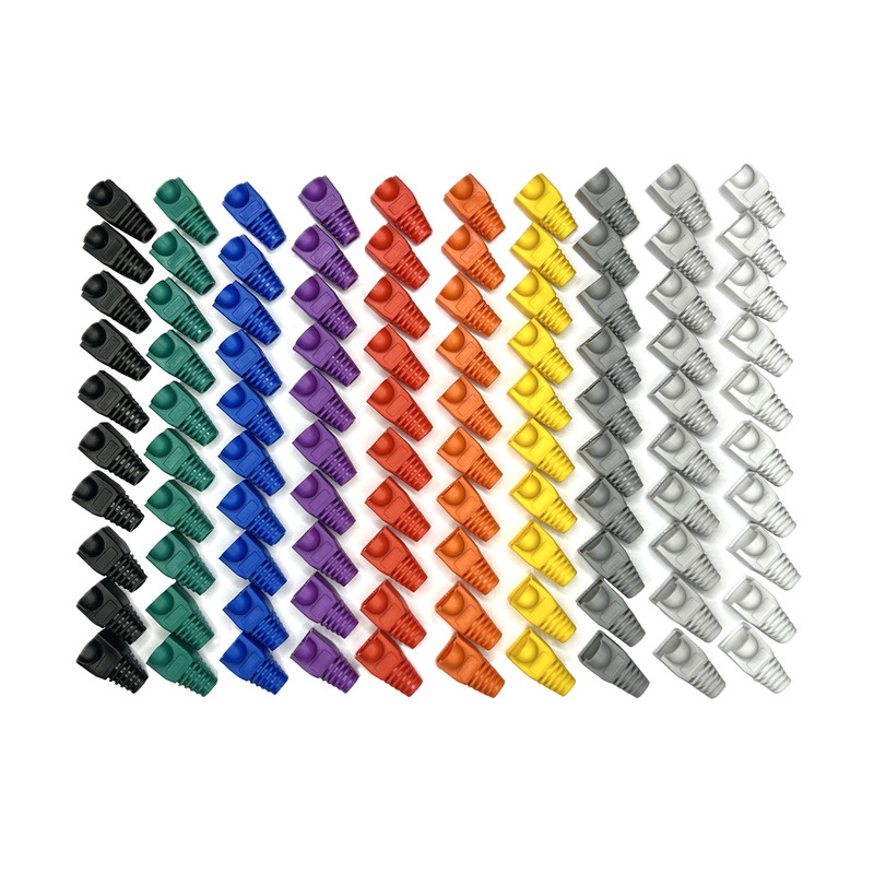 کاور سوکت شبکه یا محافظ سوکت شبکه از مهمترین ابزار های کابلهای شبکه و پچ کوردها میباشد. وظیفه اصلی این کاورها محافظت از سوکتهای کابل شبکه است. اگر از تجهیزات شبکه استفاده میکنید ممکن است به این مشکل بر خورده باشید که گاهی کابلهای همرنگ و تو در تو و غیر قابل تشخیص سر راهتان قرار میگیرد که دوست دارید در کمترین زمان بدانید هر کابل مربوط به کدام سیستم میباشد. پس راه حل چیست؟ یکی از راهحلها این است که کاور سر سوکت شبکه را با رنگبندی مختلف متمایز کنید تا به راحتی مشخص شود هر سوکت مربوط به کدام کابل و کدام سیستم است. این بسته شامل ده رنگ ده تایی که مجموعا تعداد 100 عدد محافظ سوکت شامل رنگ های ( مشکی- سبز- آبی- بنفش- قرمز- نارنجی- زرد- طوسی تیره- طوسی روشن- سفید ) می باشد که به راحتی کابل ها و سیستم ها را می توان از هم متمایز کرد. شیارهای انتهایی محافظ سوکت، جهت استفاده در کابلهای با ضخامت مختلف طراحی شده است که با برش هر شیار امکان عبور کابل ضخیمتر ایجاد میشود. کاور پلاستیکی سوکت RJ45 از بهترین و مرغوبترین مواد ساخته شده است و به شما کمک خواهد کرد که علاوه بر محافظت از سر سوکت کابل شبکه، باعث منظم شدن و متمایز شدن کابلهای شبکه از یکدیگر شود.