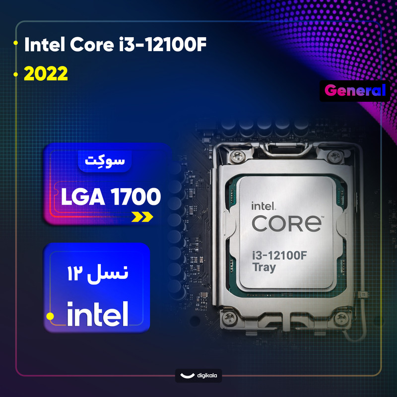 پردازنده مرکزی اینتل مدل Core i3-12100F، یکی از ستونهای اصلی معماری انقلابی Alder Lake (نسل دوازدهم) در رده محصولات اقتصادی است که در سال ۲۰۲۲ با هدف بازتعریف توان پردازشی در سطح پایه به بازار جهانی معرفی شد. این تراشه با بهرهگیری از ۴ هسته قدرتمند (Performance-cores) و مدیریت هوشمند ۸ رشته پردازشی، نخستین گام جدی اینتل برای استفاده از لیتوگرافی ۱۰ نانومتری (Intel 7) در پردازندههای رده i3 محسوب میشود. فرکانس پایه ۳.۳ گیگاهرتز که در بارهای کاری سنگین به صورت خودکار تا ۴.۳ گیگاهرتز ارتقا مییابد، در کنار ۱۲ مگابایت حافظه کش هوشمند، پویایی عملیاتی فوقالعادهای را برای سیستمهای میانرده فراهم آورده است. پشتیبانی از سوکت مدرن LGA 1700 و استانداردهای پیشرو نظیر PCIe 5.0 و حافظههای DDR5، این محصول را به زیرساختی آیندهنگرانه مبدل ساخته است. شایان ذکر است که پسوند «F» در این مدل، نمایانگر فاقد بودن واحد گرافیکی مجتمع است که تمرکز کامل توان سیلیکون را بر پردازشهای خالص مرکزی معطوف میسازد.