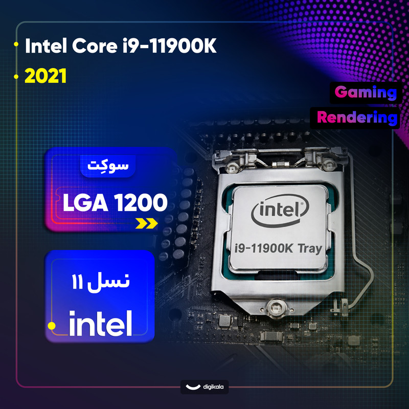 پردازنده مرکزی اینتل مدل Core i9 11900K پرچمدار جنجالی و قدرتمند نسل یازدهم اینتل است که با معماری Rocket Lake روانه بازار شد. این تراشه با وجود بازگشت به ساختار ۸ هستهای، به دلیل بهرهگیری از ریزمعماری جدید Cypress Cove، جهش قابل توجهی را در نرخ اجرای دستورالعملها (IPC) تجربه کرده است. فرکانس بوست خیرهکننده ۵.۳ گیگاهرتزی در کنار ۱۶ رشته پردازشی، این مدل را به یکی از سریعترین پردازندههای دنیا در زمان عرضه برای وظایف تکرشتهای تبدیل کرد. این محصول بر روی سوکت LGA 1200 نصب میشود و اولین نسل از پردازندههای اینتل بود که پشتیبانی از رابط PCIe نسل چهارم را به دنیای دسکتاپ آورد. با برخورداری از گرافیک مجتمع UHD 750 که بر پایه معماری Xe طراحی شده، این پردازنده نهتنها در بازیها، بلکه در کدگذاریهای ویدیویی نیز عملکردی فراتر از نسلهای پیشین خود دارد. قابلیت اورکلاک بالا و پشتیبانی از حافظههای رم DDR4 با فرکانس ۳۲۰۰ مگاهرتز، این مدل را به گزینهای ایدهآل برای کاربران حرفهای تبدیل کرده است که به دنبال استخراج حداکثر کارایی از پلتفرم خود هستند.