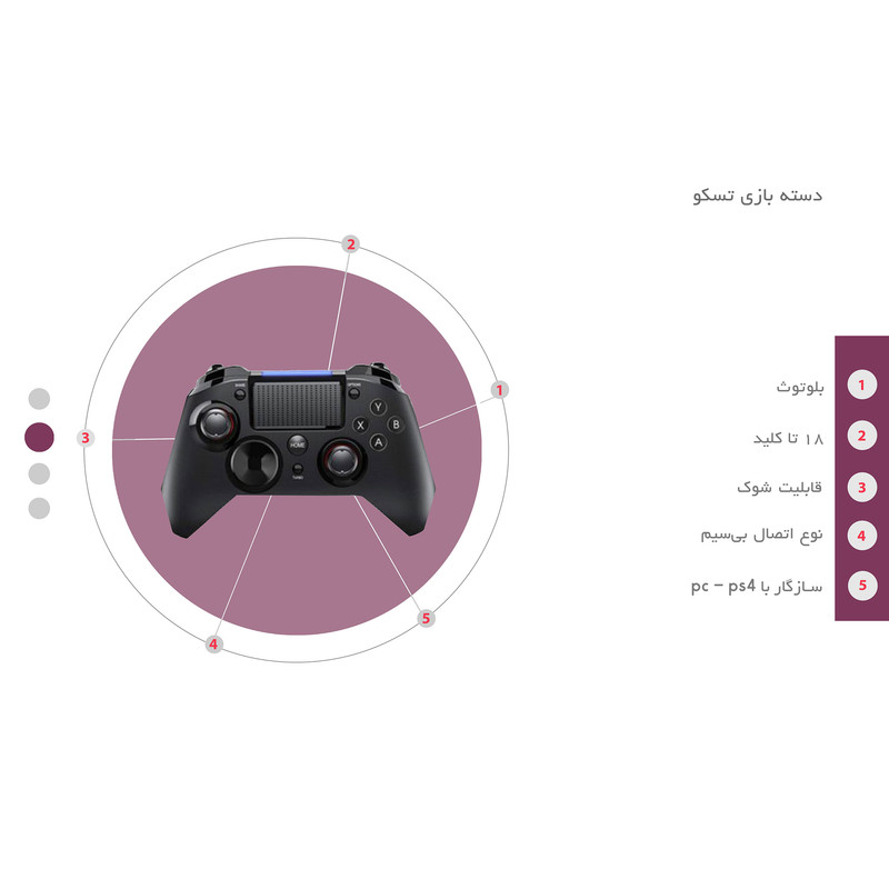 لذت بازی با کنسولهای بازی چیزی است که همه ما کم وبیش آن را تجربه کردهایم و خاطرات خوشی از آن داریم. از آتاری و میکرو گرفته تا نسلهای پیشرفته پلیاستیشن و ایکس باکس. اما وقتی نرم افزار همین بازیهای خاطره انگیز و یا بازی های مهیج و باکیفیت نسل جدید را روی تبلت و تلفنهای همراهمان نصب و اجرا میکنیم، به جرات میتوان گفت که آن مقدار هیجان و نشاط قبل را نمیگیریم. مسلما کنترل بازی روی صفحات لمسی کوچک موبایل و تبلت،(حتی اگر قابلیت لمس و حساسیت بالایی داشته باشند) مثل حالتی که با دستههای کنسولها بازی میکنیم نیست. TG 170Wیک دسته بازی(گیم پد) از برند تسکو-TSCO است که به یک تاچ پد مجهز بوده و از طریق بلوتوث به گوشیهای موبایل، تبلت و حتی کامپیوتر متصل شده و به کاربر این امکان را میدهد که فضای بیشتری از صفحهنمایش را برای بازی در اختیار داشته باشد. یکی از مهم ترین خصائص TG 170W را میتوان کلید Share یا اشتراک گذاری دانست که شما میتوانید لحظات زیادی از بازی را با دوستان خود به اشتراک بگذارید. همچنین میشود به آن یک هدست متصل کرد و تجربه بازیهای گروهی را بهبود بخشید. از دیگر ویژگیهای TG 170W میتوان به دو استیک استاندارد شستی، یک D pad روی قسمت سمت چپ، پد دکمههای عملکردی در سمت راست ؛ بهعلاوه موتور لرزانندهی Dual Shock اشاره کرد.
