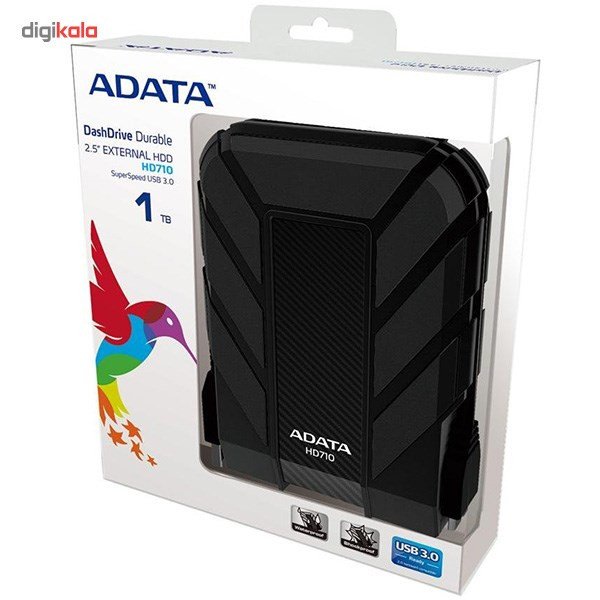 هارداکسترنال «HD710» محصول برند «ایدیتا» (ADATA) است. این هارداکسترنال در زمرهی هاردهای اکسترنال مقاوم قرار میگیرد و مشخصاتی به آن اضافه شده است تا در برابر عوامل بیرونی مقاومت بیشتری داشته باشد. HD710 در برابر ضربه و سقوط از ارتفاع مقاوم است و حتی اگر شدیدترین ضربهها به آن وارد شود، اطلاعات درون هارد به مخاطره نخواهند افتاد. ارتش ایالات متحدهی امریکا این قابلیت هارد ایدیتا را با استاندارد MIL-STD-810G 516.6 تایید کرده است؛ همچنین HD710 از معیارهای استاندارد IP68 بهره میبرد؛ معنای این استاندارد، مقاومت در برابر آب و گردوخاک است. این هارد حتی در صورت افتادن در آب شور هم آسیبی نمیبیند و قطرهای آب به درون آن نفوذ نخواهد کرد. سازندهی محصول تضمین کرده است که در صورت قرارگرفتن در شرایط جوی بیابان، غبار به درون محصول نفوذ نمیکند. اتصال هارد به کامپیوتر با استفاده از رابط USB 3.0 انجام میشود. کابل اتصال این هارداکسترنال به کامپیوتر در شیاری که دور بدنه تعبیه شده است، محکم میشود. این طراحی HD710، احتمال گمشدن کابل را به حداقل میرساند. یک LED آبی روی بدنهی هارد کار شده که روشنبودن HD710 و انتقال اطلاعات را به کاربر نمایش میدهد. این هارد 1ترابایتی دارای رنگبندی آبی، زرد و مشکی است.