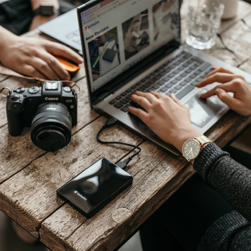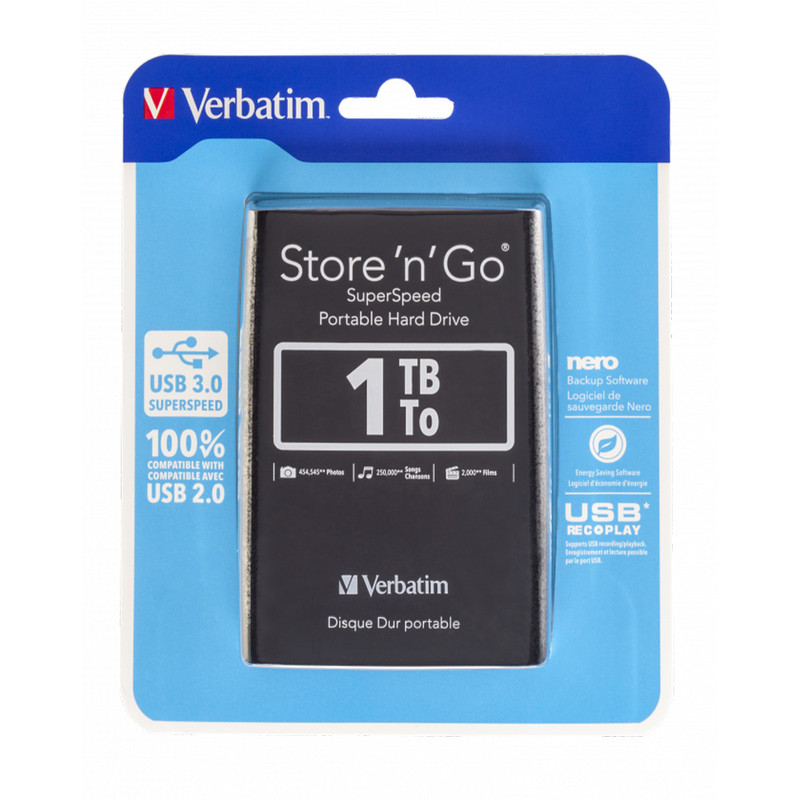 هارد اکسترنال قابل حمل Verbatim Store n Go SuperSpeed با استفاده از رابط USB 3.0 با سرعت فوقالعاده، از عملکرد ذخیره سازی بالایی برخوردار است. USB 3.0 تا 10 برابر سرعت انتقال داده بیشتری نسبت به USB 2.0 (بر اساس سرعت گذرگاه USB) ارائه میدهد و انتقال داده فوقالعاده سریعی را در حال کار فراهم میکند. فایلهای دیجیتالی و کاری روزانه خود را روی این درایو قابل حمل ذخیره و حمل کنید. طراحی شیک آن نمای زیبایی به میز کار شما خواهد داد و همراهی عالی برای لپتاپ شما خواهد بود.
