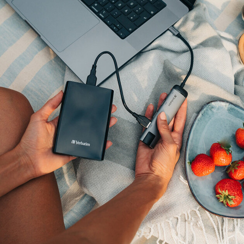 درایوهایی که 2 ترابایت یا کمتر هستند، با فرمت FAT32 فرمت میشوند و به آنها اجازه میدهند بلافاصله روی ویندوز و مک OSx کار کنند. درایوهای بالای 2 ترابایت با فرمت NTFS فرمت میشوند که برای سیستمهای ویندوز سازگار است، اما کاربران مک باید درایو را به HFS+ فرمت کنند تا کاملاً با سیستم عاملهای مک OSx سازگار شوند. فرمت HFS+ را میتوان با استفاده از Verbatim VHD Formatter که روی درایو قرار دارد، اعمال کرد. برای امنیت بیشتر، نرمافزار پشتیبانگیری Nero نیز ارائه شده است تا به پشتیبانگیری از هارد دیسک لپتاپ یا رایانه شخصی شما کمک کند.