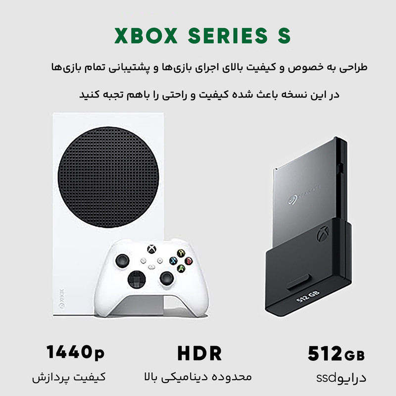 این کنسول از رزولوشن 1440p با قابلیت ارتقا به 4K و فریمریت تا 120 هرتز پشتیبانی میکند و تجربهای روان را به کاربران ارائه میدهد. ایکسباکس سری اس با طراحی بدون دیسک (All-Digital) عرضه شده است، به همین دلیل برای دانلود و اجرای بازیها، به اتصال اینترنت نیاز خواهید داشت و امکان استفاده از بازیهای فیزیکی برای آن وجود ندارد.