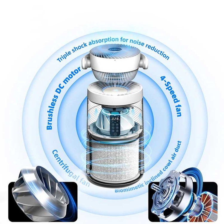 امکان برنامه ریزی از طریق گوشی هوشمند , پشتیبانی از دستیار صوتی های گوگل و الکسا , تصفیه و انتشار هوای مطلوب به صورت 3D , سرعت انتشار باد 6.5 متر در ثانیه , سرعت گردش هوا 2248 دور در دقیقه , مسافت پرتاب باد 11 متر