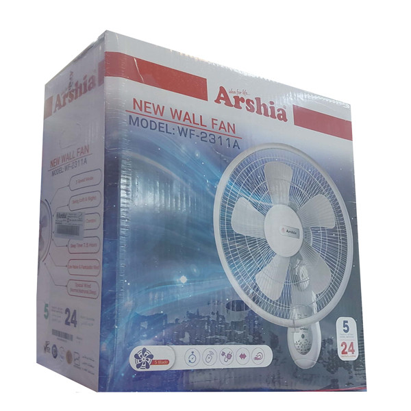 پنکه دیواری ارشیا مدل WF-2311A کنترل دار با سه حالت سرعت و 5 متر باددهی مطلوب و پر توان و گردش چپ و راست و مجهز به تایمر است که بدین ترتیب برای خوابی راحتتر در شبهای تابستان کافی است تایمر را برای زمانی موردنظر فعال نمایید و بدون نگرانی از خوابی آسوده لذت ببرید . از دیگر ویژگی های این مدل پنکه برخورداری از حالت وزش ریتمیک است که وزش بادی ملایم را شبیهسازی میکند و از راه دور نیز قابل کنترل است.