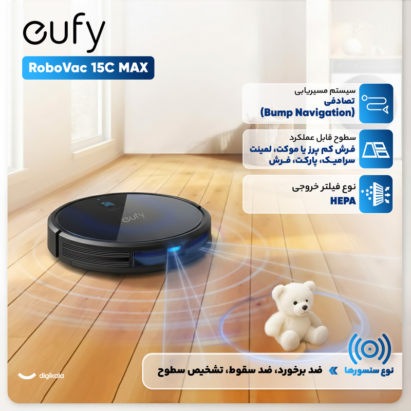 جاروبرقی هوشمند رباتیک یوفی مدل eufy RoboVac 15C MAX یک محصول شگفت انگیز جدید از کمپانی Anker است که به راحتی هنگامی که شما در منزل نیستید و یا حتی هنگام حضور شما به صورت خودکار سطح خانه شما را تمیز میکند.